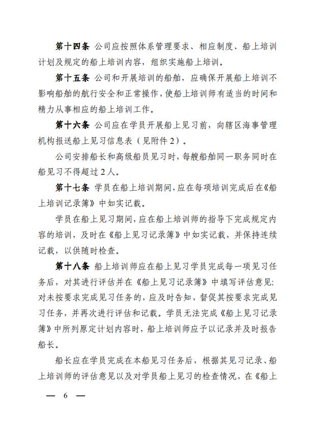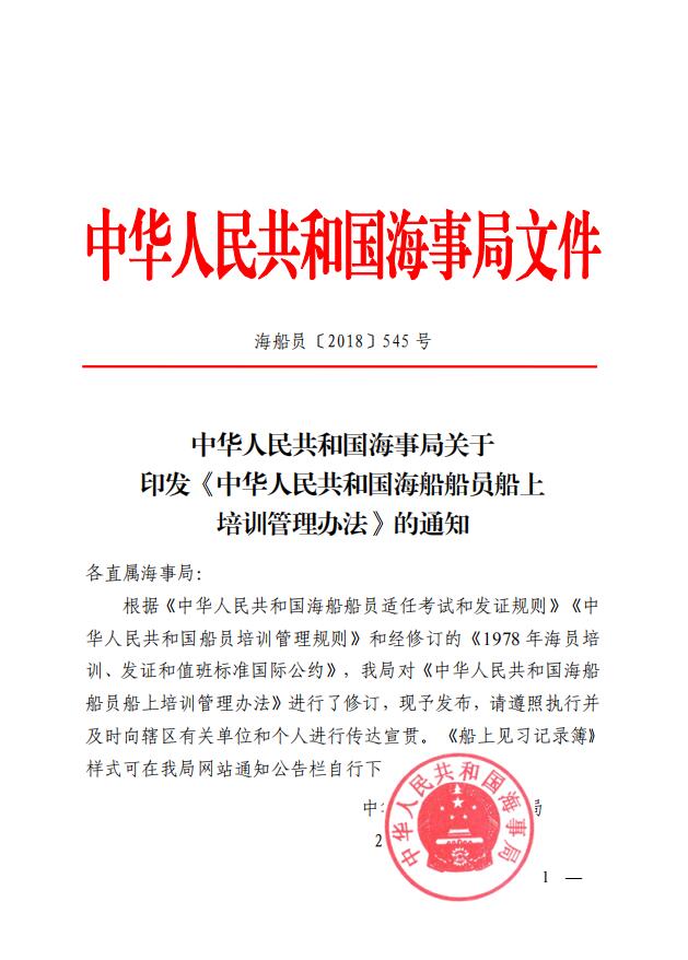 中華人民共和國海事局關(guān)于印發(fā)《中華人民共和國海船船員船上培訓(xùn)管理辦法》的通知