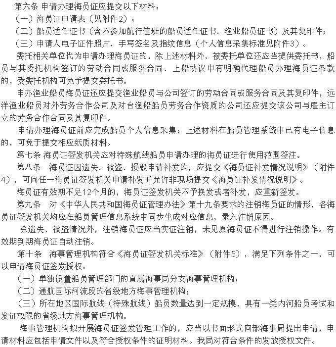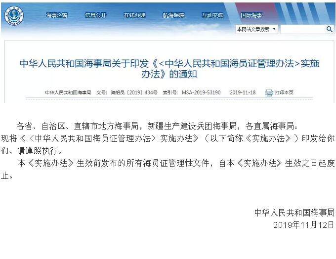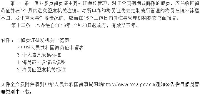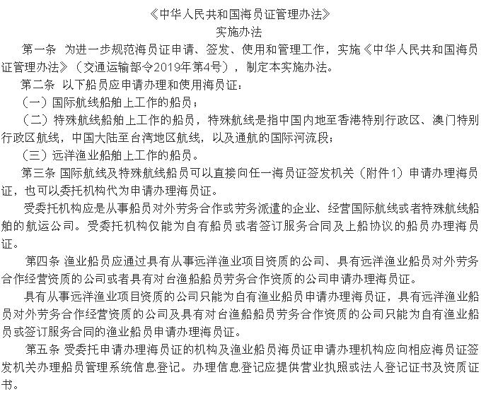 《<中華人民共和國海員證管理辦法>實施辦法》 2019年12月20日起施行!