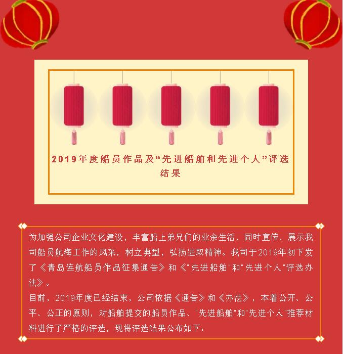 2019年度船員作品及“先進(jìn)船舶和先進(jìn)個(gè)人”評(píng)選結(jié)果