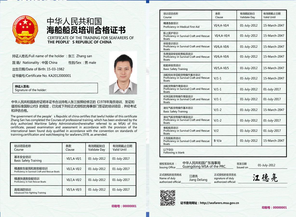 中華人民共和國海船船員培訓合格證書